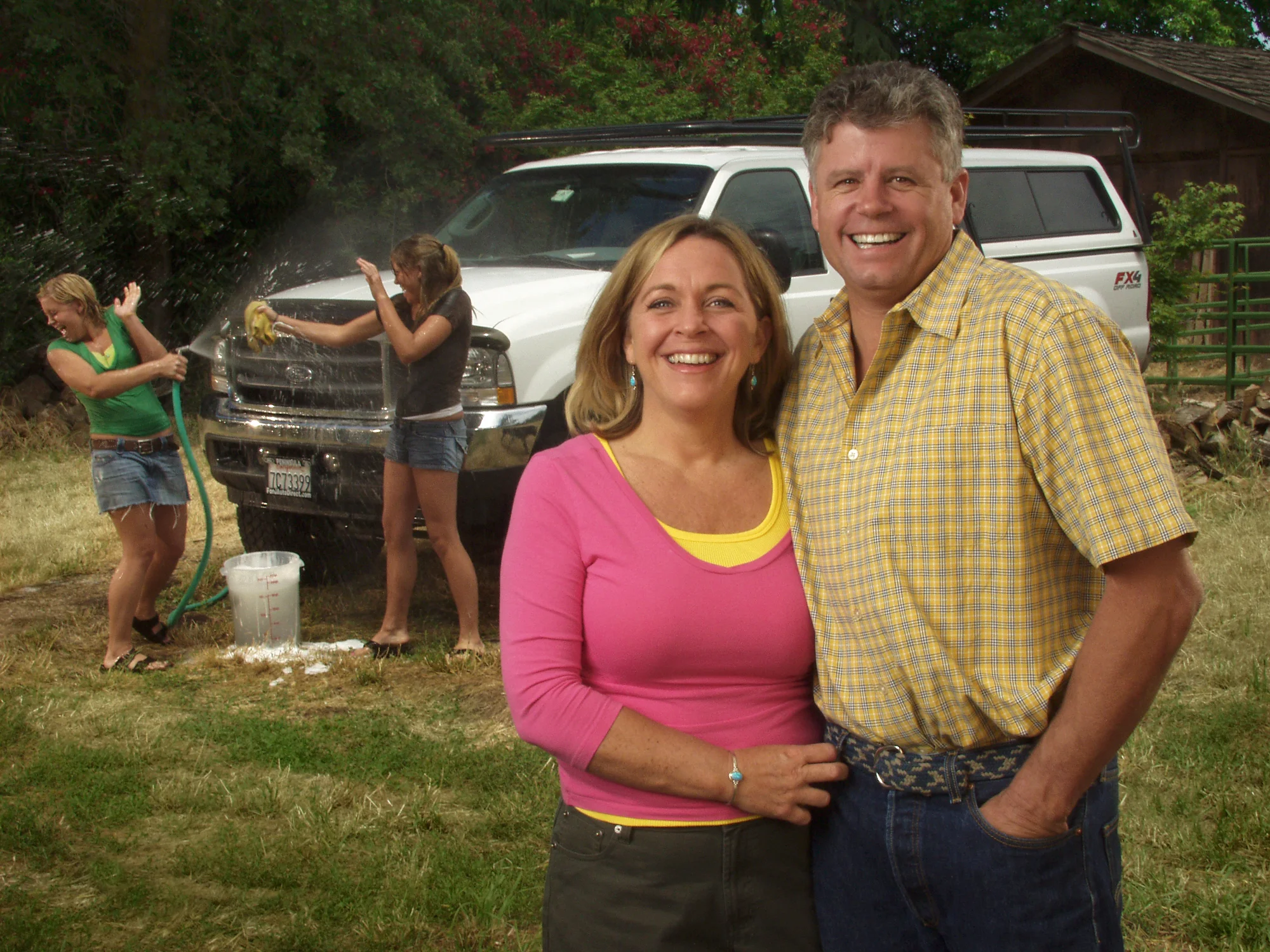 These are "real people", as in a real family, shot as a two-page testimonial spread for a regional Farmers Insurance ad. I was to create a portrait of the subjects with their kids engaged somehow with the family's truck in the background, perhaps loading it for a vacation. On a nice warm day, it seemed that washing the truck might be appropriate, a little more dynamic, and just plain fun.